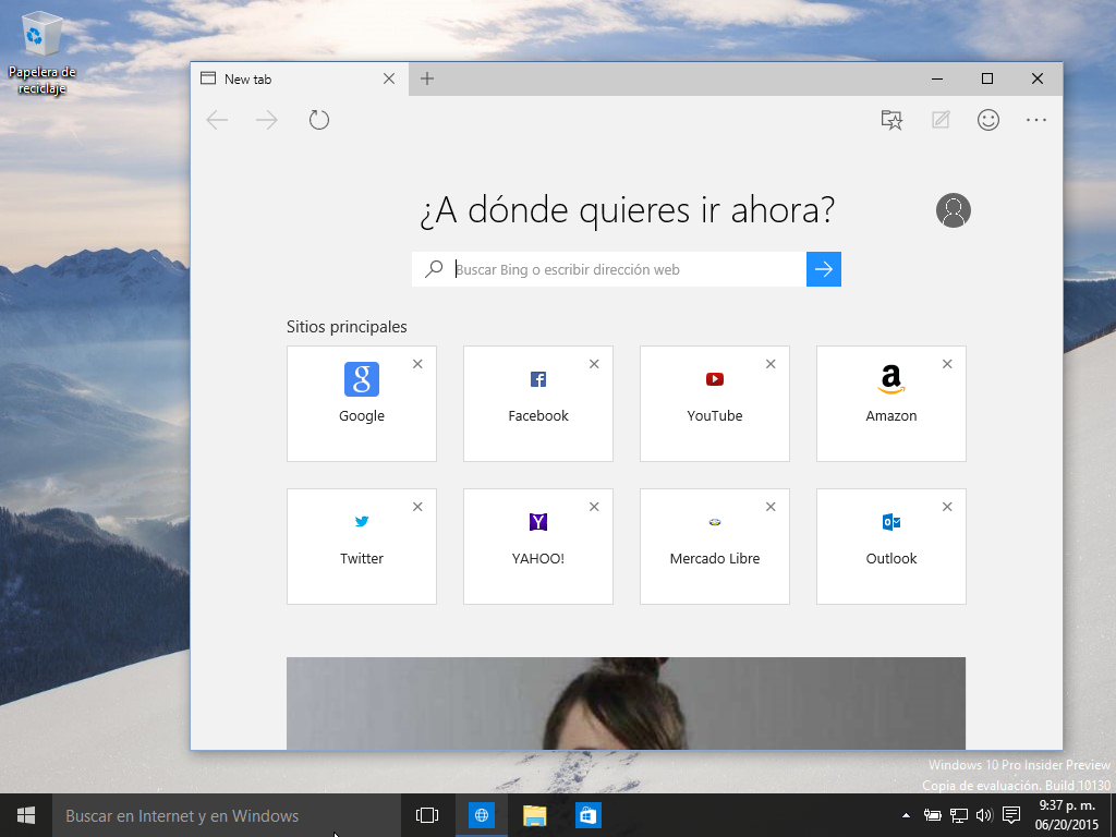 Lo que muchos esperaban, Project Spartan, el navegador que está dispuesto a reemplazar al difamado Internet Explorer(que por cierto está instalado, pero no lo muestran) como predeterminado en Windows.
